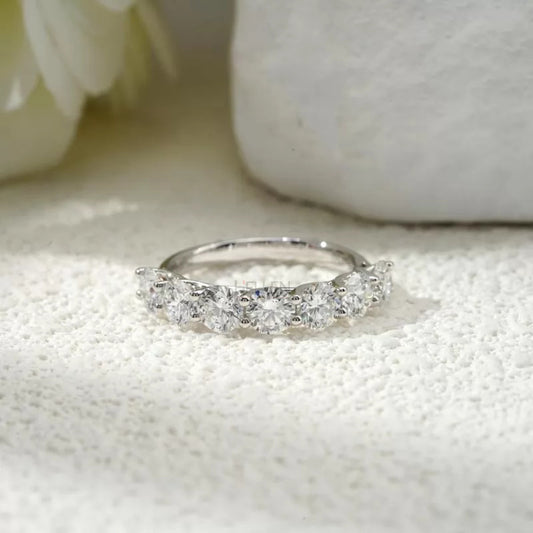 Round Cut Moissanite Half Eternity Band-Sterling 925