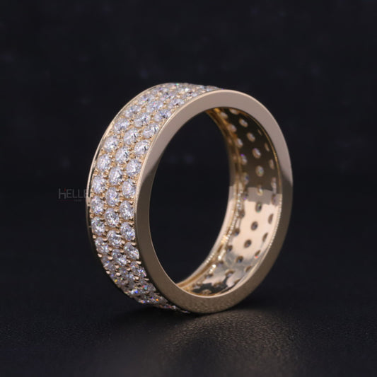 • Three-line round cut moissanite eternity band – bold brilliance with stacked sparkle design
