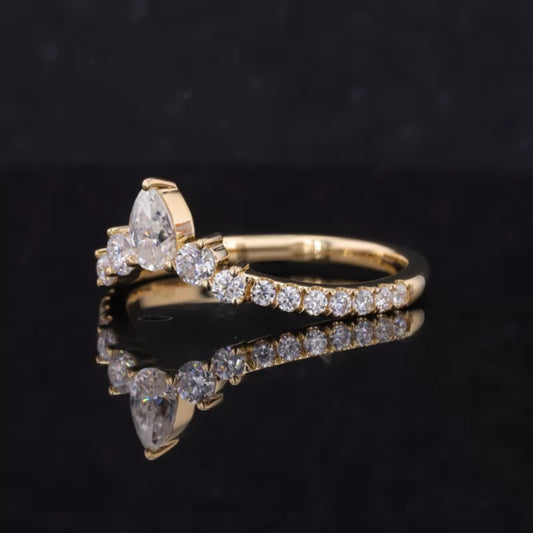 Round And Pear Cut V Curved Moissanite Wedding Band