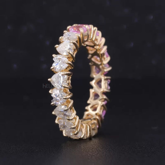 Half Pink Gemstone & Moissanite Heart Cut Wedding Band