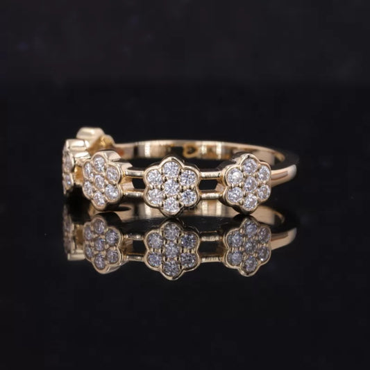 • Floral illusion cluster wedding band with round diamonds – nature-inspired sparkle for a graceful bridal look