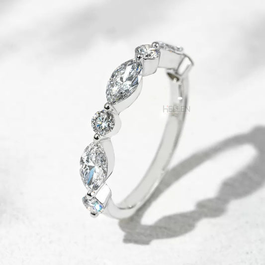 • Eternity band with alternating marquise and round cut moissanite – symbolic sparkle for timeless love
