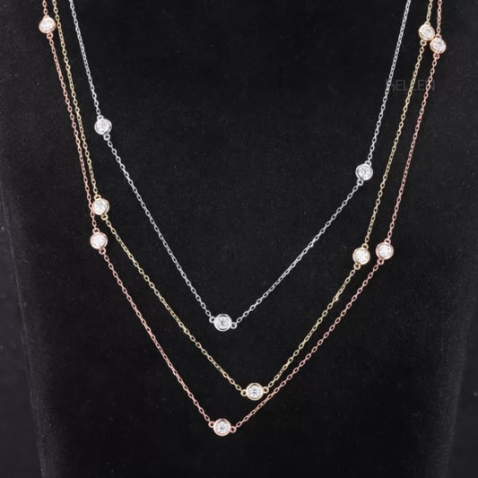 Round Cut Moissanite Bezel Setting Chain Necklace