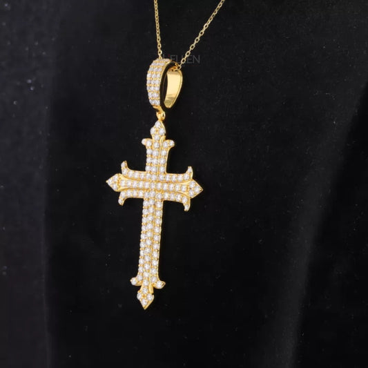 Round Cut Moissanite 3 Line Simple Elegant Cross Necklace
