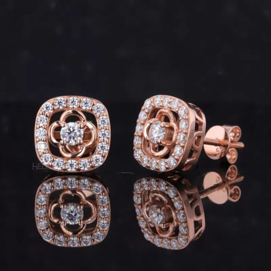 Round Cut VVS Moissanite Halo Studs for Everyday 925 Silver