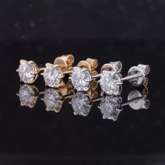Round Cut VVS Moissanite Stud With 6 Claw Prongs