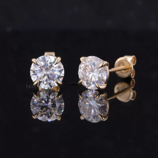 Round Cut VVS Moissanite Stud With 4 Claw Prongs