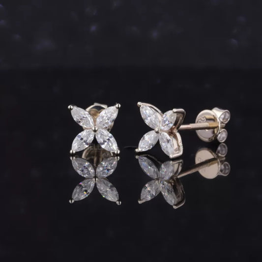 Butterfly Marquis & Round Cut Moissanite Studs For Her 925 Silver