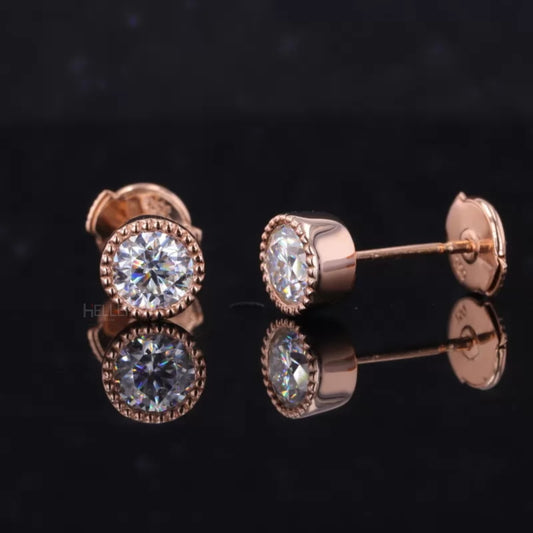 • Round stud earrings with milgrain bezel setting – vintage-inspired elegance in a secure and stylish form