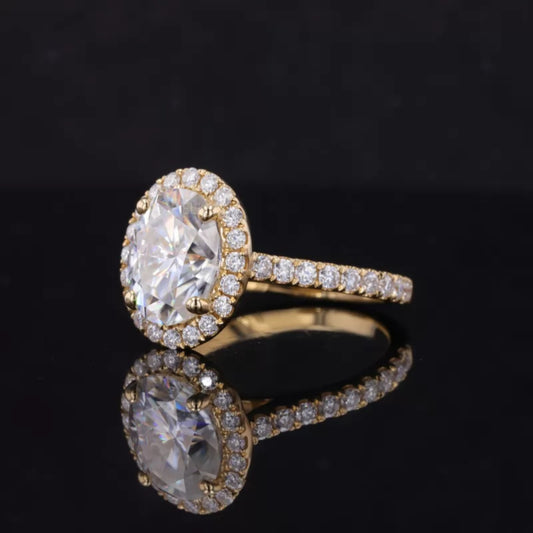 Oval Cut Center & Round Halo Moissanite 3 Stone Proposal Ring