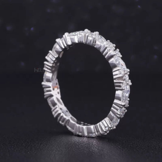 Marquise & Round Moissanite Eternity Wedding Band – 925 Silver