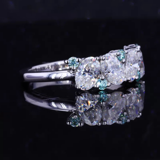 Oval and Round cut Moissanite Anniversary Band Sterling Silver