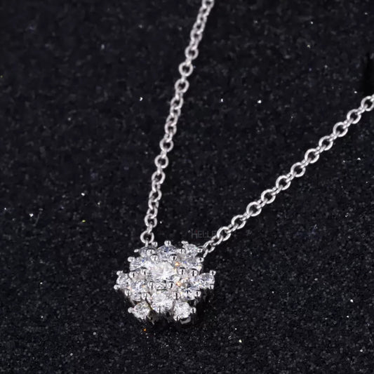 Women Flower Necklace With Moissanite Round Cut Diamonds