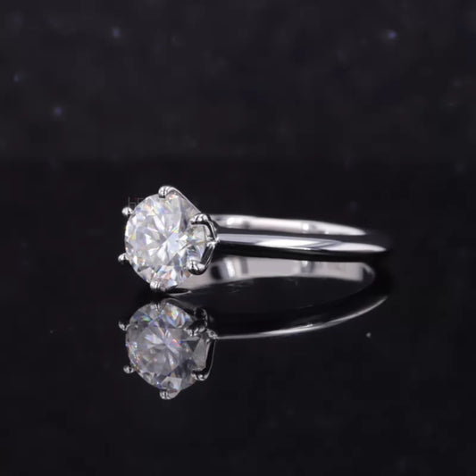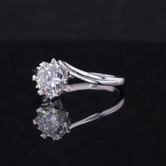 Round Cut Solitaire Moissanite Crown Setting Engagement Ring