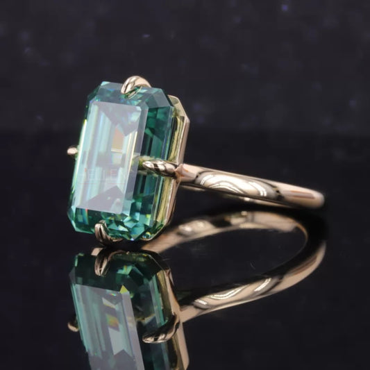 Green Emerald Cut Solitaire Moissanite Engagement Ring