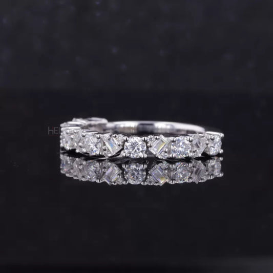 Heart Cut Moissanite Half Studded Anniversary Ring