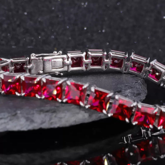Red Ruby Gemstone Asscher Cut Claw Prong Tennis Bracelet