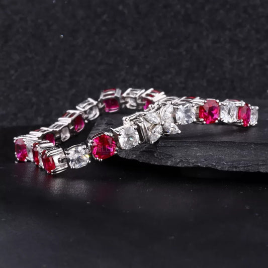 Cushion Cut Ruby & Moissanite Alternating Tennis Bracelet with Lock