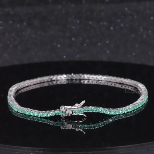 Trendy Round Cut Moissanite & Emerald Gemstone Tennis Bracelet