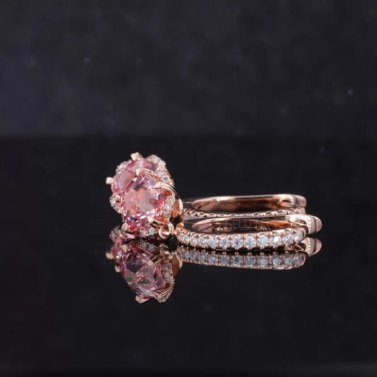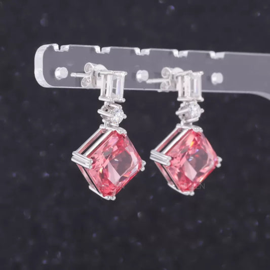 Asscher Cut Padparadscha Sapphire Drops Earrings