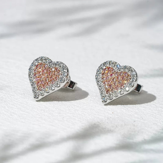 Pink Gemstone And Colorless Moissanite Heart shaped Studs