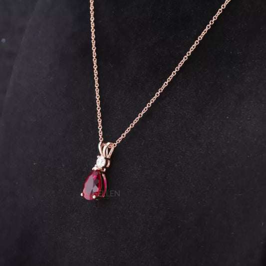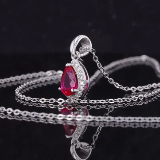 Pear Cut Red Rudy Drop Dazzling Necklace With Round Moissanite