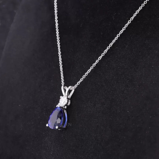 Pear Cut Blue Tanzanite Drop Necklace With Round Moissanite