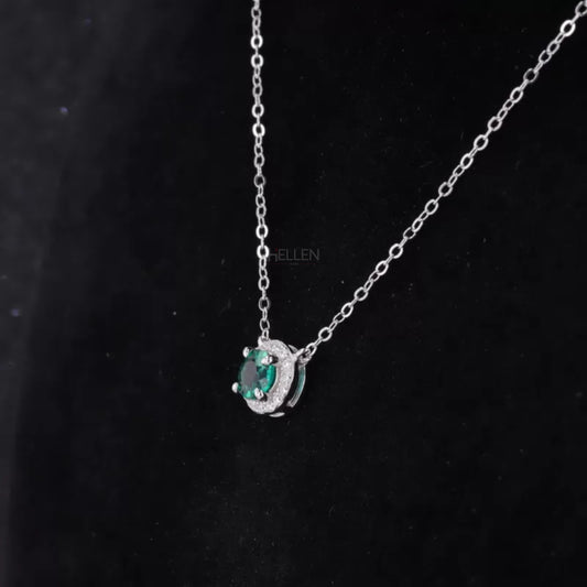 Round Halo Green Emerald & Moissanite Gemstone Necklace