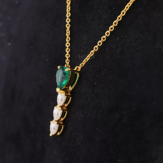 Star Shaped Green Emerald & Moissanite Gemstone Necklace