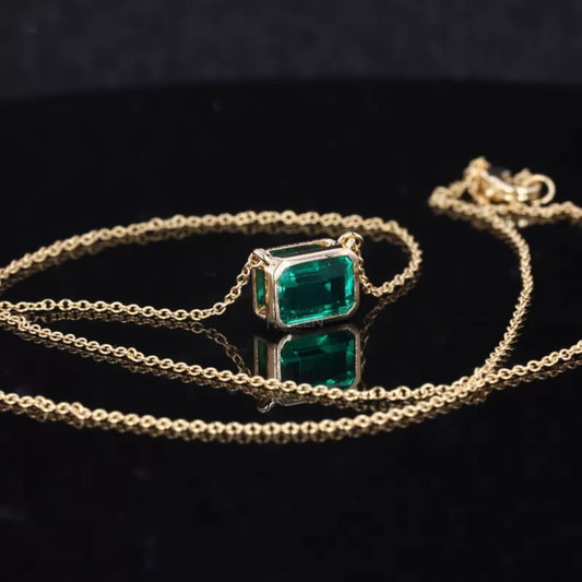 Elegant Emerald & Round Moissanite Bezel Chain Necklace