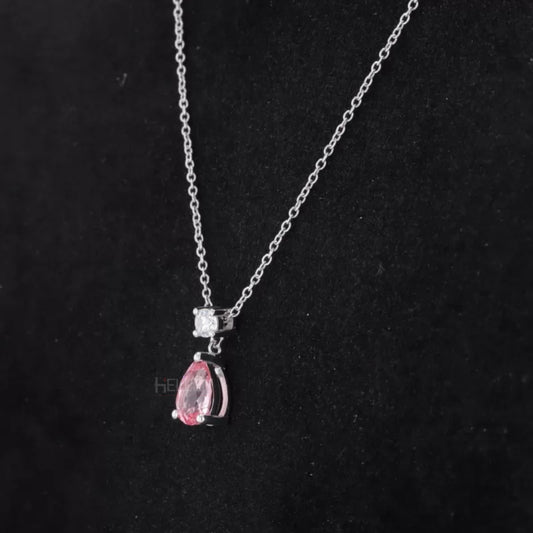 Fancy Pink Pear Cut Drop Gemstone And Round Moissanite Necklace
