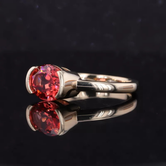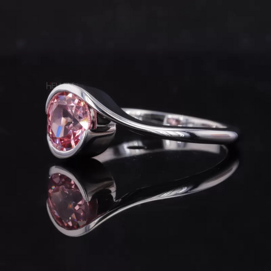 Unique Twisted Setting Round Cut Solitaire Pink Sapphire Ring