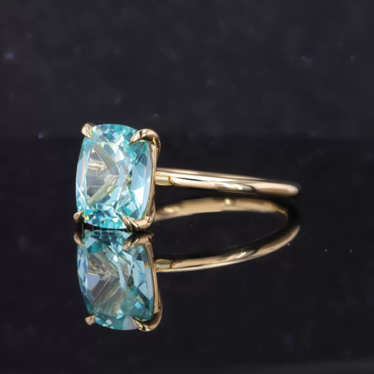 Elongated Cushion Cut Aquamarine Solitaire Engagement Ring