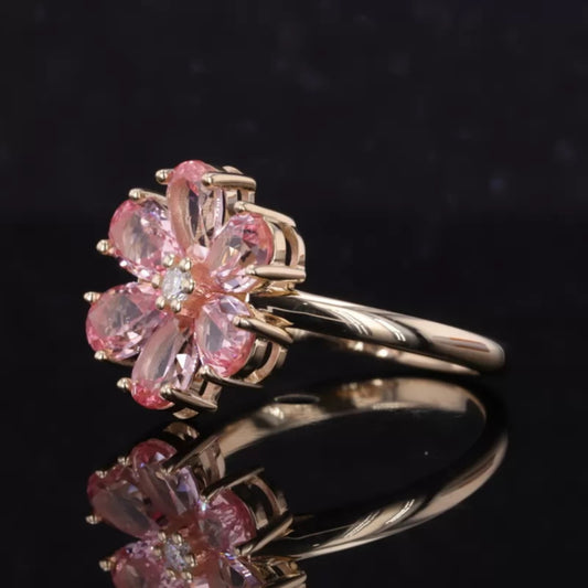 Pink Sapphire Pear cut Gemstone Blossom Fall Season Ring