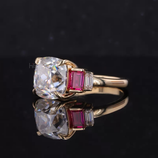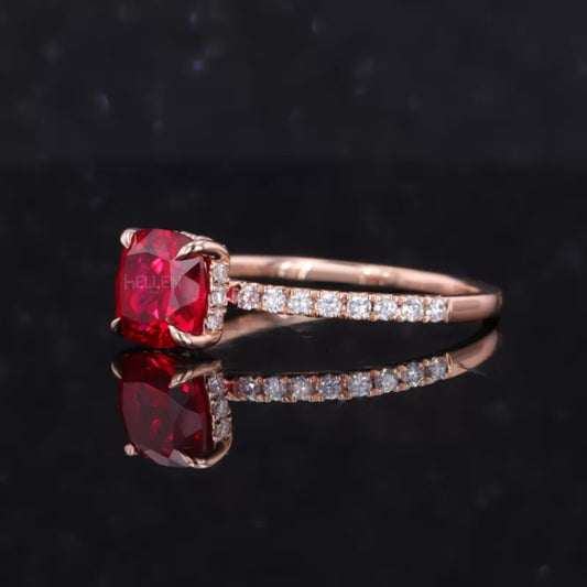 Red Ruby Cushion Cut Moissanite Pave Ring