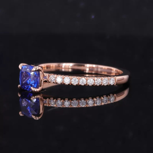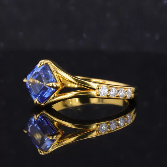 Princess Cut Blue Sapphire & Moissanite Pave Solitaire Ring
