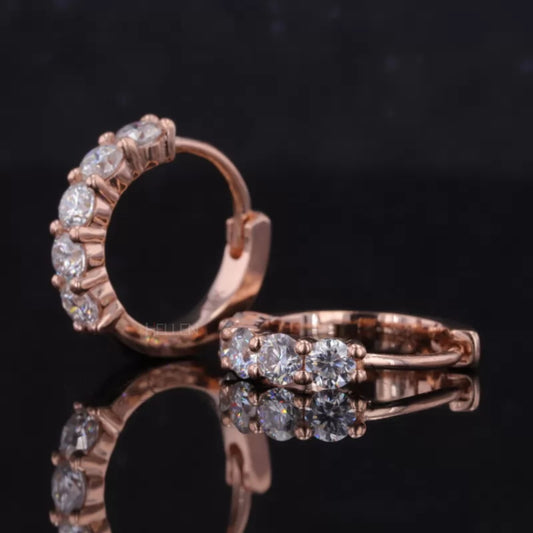 Five Stone Each Huggies Hoop Earring with Round Cut Wavy Style