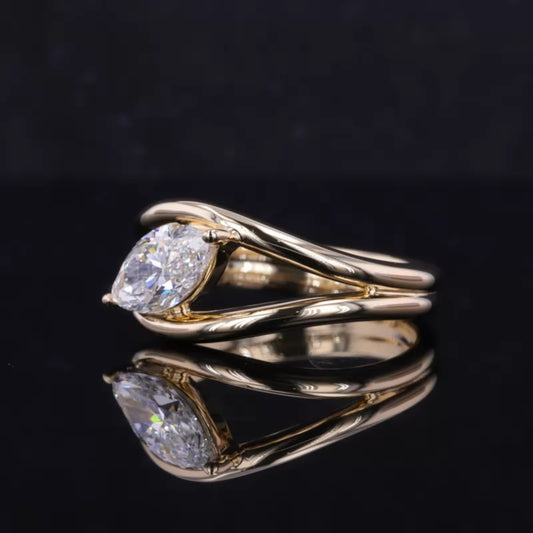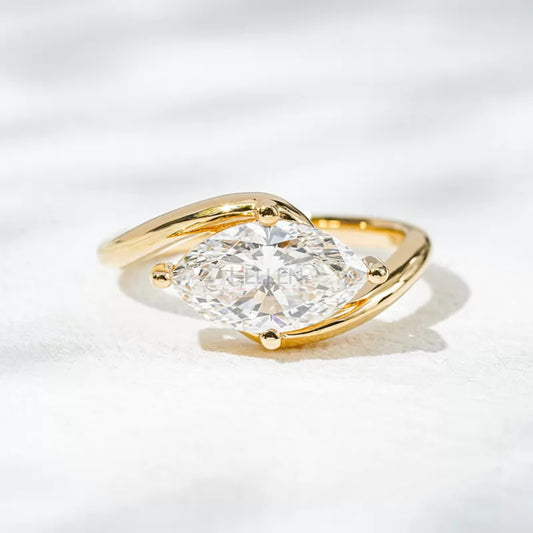 Split Shank Marquise Cut Moissanite Solitaire Engagement Ring