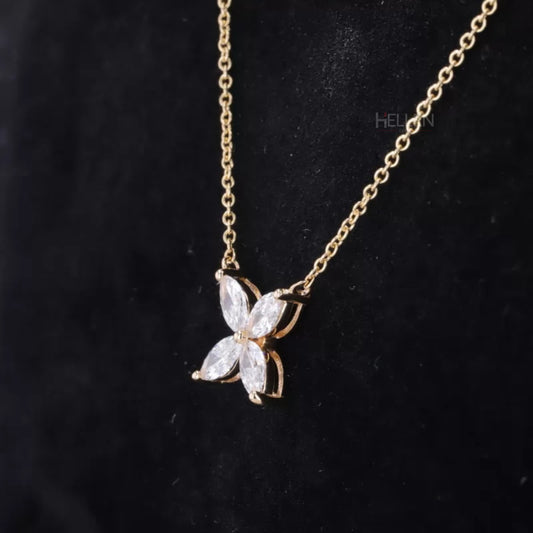 Marquis Cut 4 Petals Moissanite Necklace For Everyday
