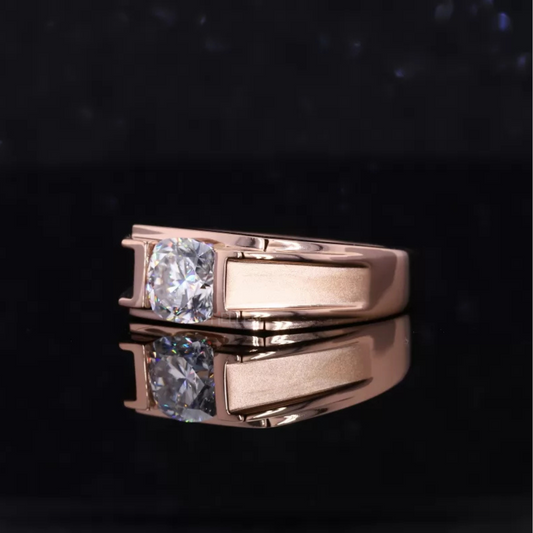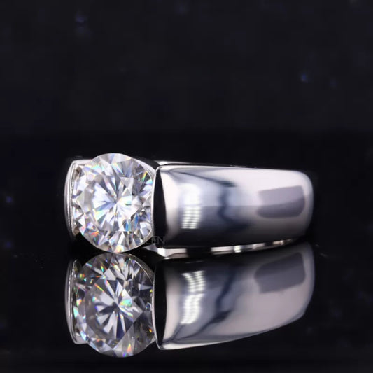 Round Cut Solitaire Moissanite Mens Engagement Ring