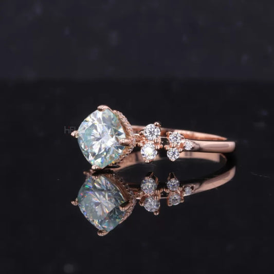 10 Ct Cushion Cut Solitaire Moissanite Hidden Halo & Round Side Ring