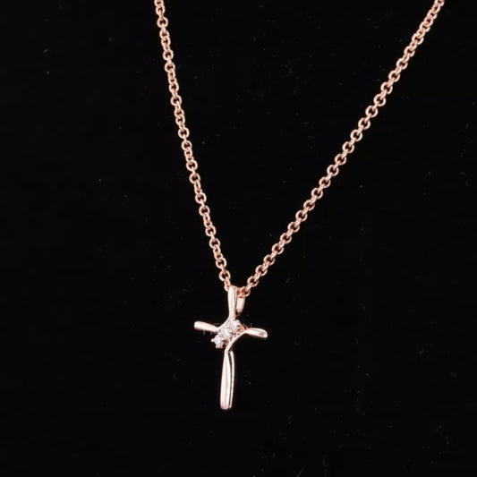 Crossed Pendent With 3 Round Cut Moissanite Necklace