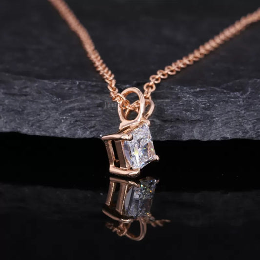Princess Cut 4 Prong Dual Loop Solitaire Moissanite Necklace
