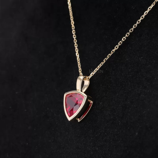 Blood Red Ruby Trillion Cut Gemstone Solitaire Necklace