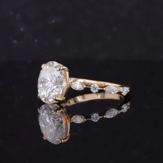Oval Cut Solitaire with Marquise & Round Moissanite Band Ring