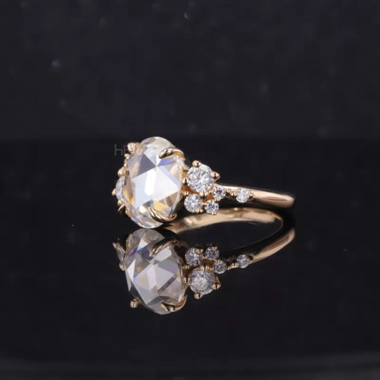 Oval Moissanite Solitaire vintage Dainty Cluster Ring