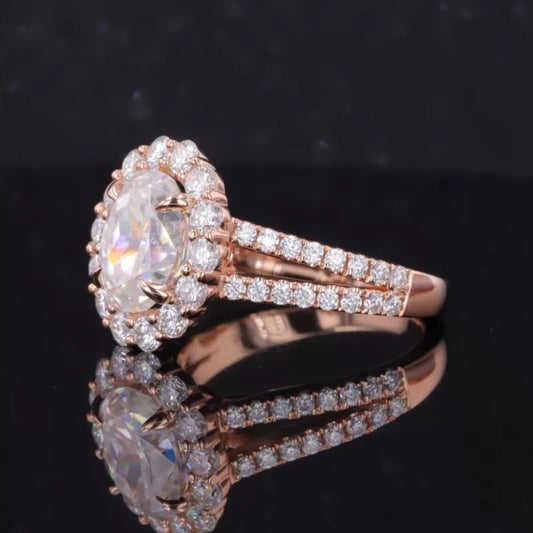 Oval Cut Halo Split Shank Moissanite Engagement Ring