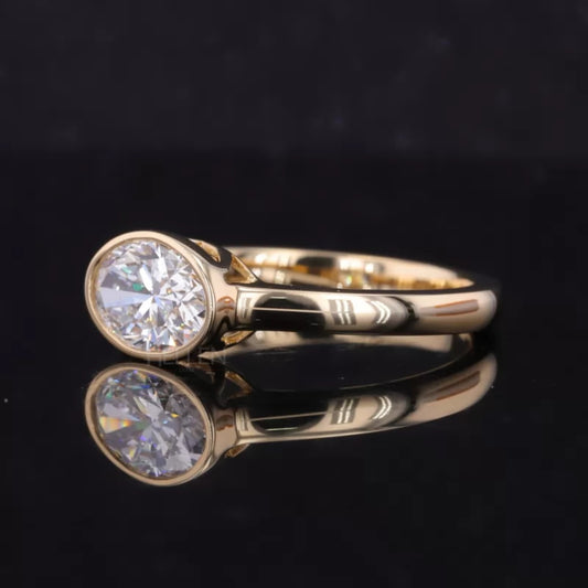 East to West Oval Cut Moissanite Solitaire Engagement Ring – Bezel