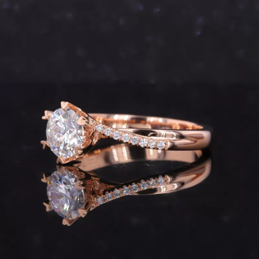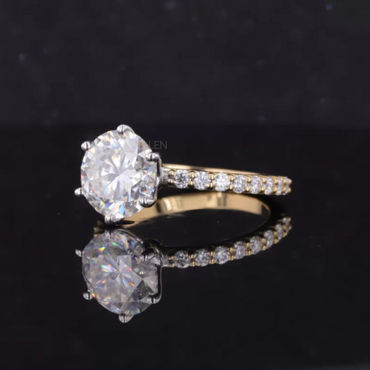 Round Cut Solitaire Moissanite 2-Tone Ring with Diamonds on Shank