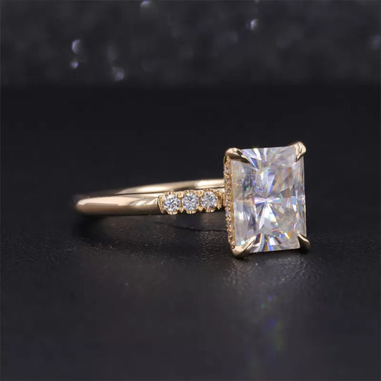 Radiant Cut Moissanite Solitaire Ring with Pave Diamond Shank